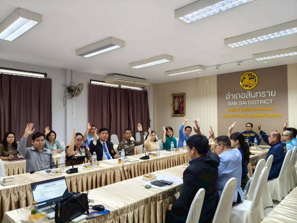วันที่ 24 กันยายน 2568 เวลา 9.00 น. ณ ห้องประชุมที่ว่าการอำเภอสันทราย โดยมีนายกิติพัฒน์ กะวัง เป็นประธานในการประชุมคณะกรรมพัฒนาคุณภาพชีวิตระดับอำเภอ ครั้งที่ 4 ประจำปีงบประมาณ 2568 พร้อมด้วยคณะกรรมการพัฒนาคุณภาพชีวิตอำเภอสันทราย เเขวงการทางที่ 2 เเละนายสมชาย นันทวัฒนากรณ์ สาธารณสุขอำเภอสันทราย เลขานุการ พชอ.ดำเนินการตามวาระประชุม โดยการประชุมครั้งนี้ ได้มีการติดตามการเเต่งตั้งคณะกรรมการ พชต. เเละ พชม. เเละได้สรุปผลการดำเนินงาน พชอ.ปี 2568 ทั้งนี้ได้เชิญเเขวงการทางที่ 2 เข้าร่วมประชุมด้วย เพื่อรับฟังปัญหาจุดเสี่ยงในเเต่ละตำบล พร้อมทั้งหาเเนวทางเเก้ไขต่อไป โดยในปีงบประมาณ 2569 ประเด็นพัฒนาคุณภาพชีวิตระดับอำเภอ ได้มีการเสนอหัวข้อเบื้องต้น ดังนี้หัวข้อที่ 1 ประเด็นเรื่องอุบัติเหตุ หัวข้อที่ 2 ประเด็นเรื่องโรคไม่ติดต่อเรื้อรัง (NCDs) หัวข้อที่ 3 โครงข่ายไฟฟ้า